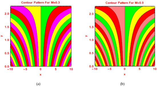 In Figure 11 and Figure 12, the behavior of streamlines is shown via contour plot approach for preeminent parameters.