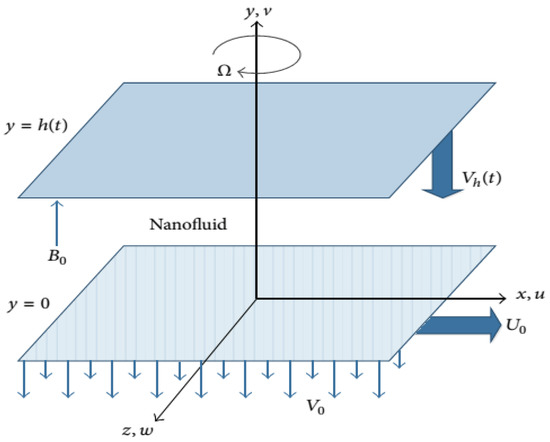 - Khan, U.; Ahmed, N.; Mohyud-Din, S.T. Numerical investigation for three-dimensional squeezing flow of nanofluid in a rotating channel with lower stretching wall suspended by carbon nanotubes. Appl. Therm. Eng. 2017, 113, 1107–1117. [Google Scholar] [CrossRef]