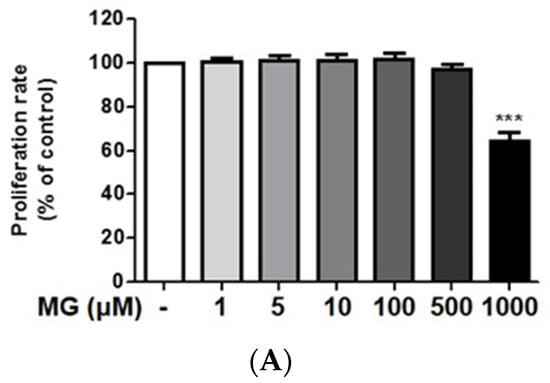 2.1. Effects of the OSSC Extract and Its Major Compounds on the Viability of MG-Treated Cells