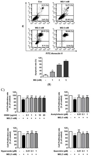 2.2 Effects of the OSSC Extract and Its Maker Compounds on MG-Induced Apoptosis