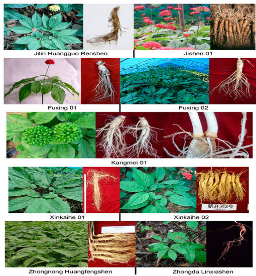 - Zhao, S.J.; Li, F.Y.; Zhao, Y.H.; Liu, Y.Z.; Sun, C.W.; Huang, Z.H.; Wu, L.J.; Jin, Y.H. Studies on Selection Theory for High yield Variety of Panax ginseng and Breeding of Jishen 1. Sci. Agric. Sin. 1998, 31, 51–62. [Google Scholar]
