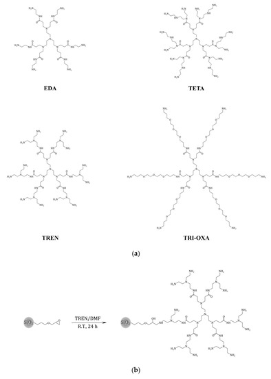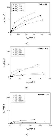Sample Availability: Samples of the compounds SiO2-EDA, SiO2-TETA, SiO2-TREN and SiO2-TRI-OXA are available from the authors. |