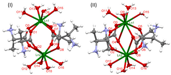 - Glowiak, T.; Legendziewicz, J.; Huskowska, E.; Gawryszewska, P. Ligand chirality effect on the structure and its spectroscopic consequences in [Ln2(Ala)4(H2O)8](ClO4)6 crystals. Polyhedron 1996, 15, 2939–2947. [Google Scholar] [CrossRef]