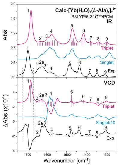 2.3. Experimental IR and VCD Spectra of the Studied Complexes