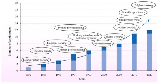 Increase of molecular docking applications. The dark blue compartment shows the new applications that are summed up with the existing ones.