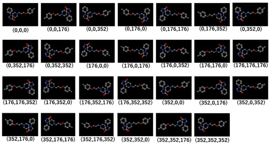 Representative molecular images used in the DeepSnap-DL method. The parentheses below each image indicates the angles of depiction in DeepSnap.