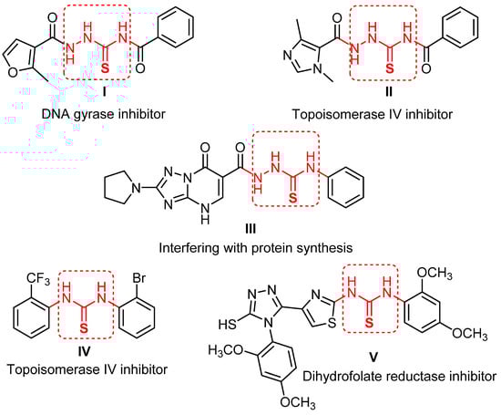 Recently discovered thiourea and thiosemicarbazide derivatives having antimicrobial activities via different mechanisms of action.
