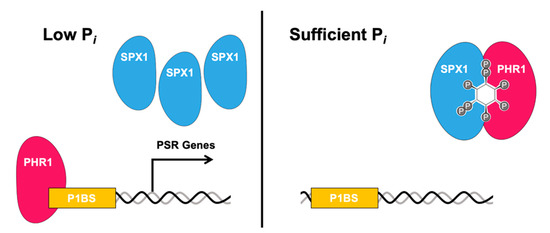 - Ried, M.K.; Wild, R.; Zhu, J.; Broger, L.; Harmel, R.K.; Hothorn, L.A.; Fiedler, D.; Hothorn, M. Inositol pyrophosphates promote the interaction of SPX domains with the coiled-coil motif of PHR transcription factors to regulate plant phosphate homeostasis. BioRxiv 2019. [Google Scholar] [CrossRef]
