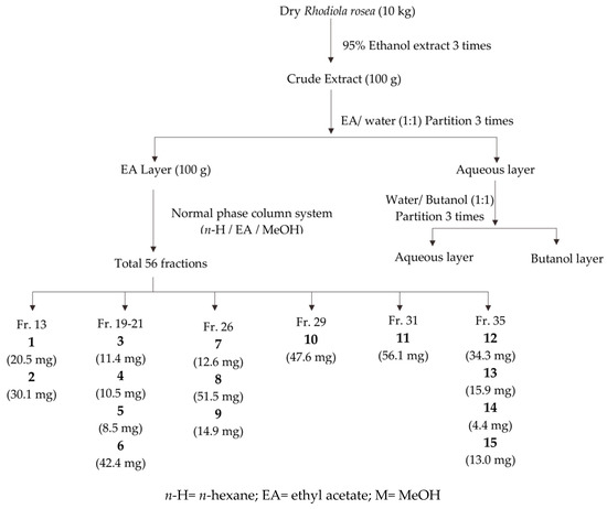 Bioactivity-guided fractionation and isolation of the ethanol extract of the root of R. rosea resulted in the isolation of 15 compounds.