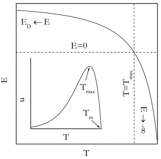 The resulting dependence is depicted in Figure 4. Indeed, it is seen that E takes on large negative values in the vicinity of Tm but increases toward 0 as temperature drops toward Tmax. Yet, in the limit of large supercoolings (T < Tmax) E is positive and decreases from ED toward 0 as temperature rises. The nucleation model (Equation (11)) gives rise to a different analytic expression for the temperature dependence of the activation energy [9], viz.: