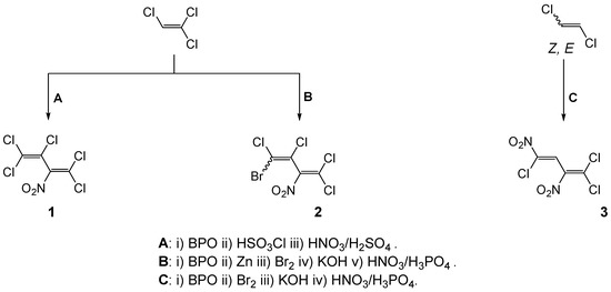 Synthesis of the polyhalonitrobutadienes 1–3.