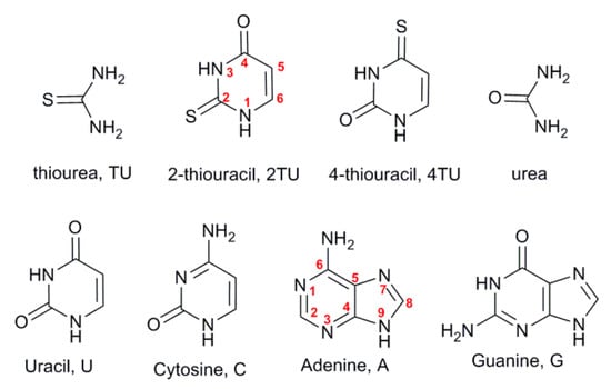 29. Les, A.; Adamowicz, L. Tautomerism of 2- and 4-thiouracil. Ab initio theoretical study. J. Am. Chem. Soc. 1990, 112, 1504–1509. [Google Scholar] [CrossRef]
