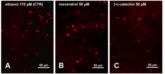 Figure 1 shows, as an example, the results of incubating the organotypic cultures in the presence of 50 µM resveratrol (Figure 1B) or 50 µM (+)-catechin (Figure 1C).