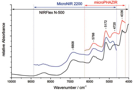 Near-infrared (NIR; 1000–2500 nm; 10,000–4000 cm−1) spectroscopy might be summarized as a vibrational spectroscopy technique [1,2,3] that occupies a somewhat peculiar spot across the field of bioscience. On the one hand, it has earned the status of tool-of-choice in various applications concerning the qualitative and quantitative assessment of bio-related samples, e.g., in medicinal plant analysis or the issues related with the quality control of natural products. On the other hand, in several others areas it competes with better established techniques such as infrared (IR, i.e., mid-infrared, MIR; 4000–400 cm−1; 2500–25,000 nm) and Raman spectroscopy. The typical key areas are e.g., bioanalytical research and biomedical diagnosis, in which NIR spectroscopy has typically been shadowed by IR and Raman techniques [4,5,6,7,8], and where it still has room to progress in popularity. As the consequence of several reasons, with some exceptions, the full potential of NIR spectroscopy in bio-applications yet remains to be uncovered. Nonetheless, NIR spectroscopy steadily gains in importance with a number of recent advances accelerating this trend. Recent years have demonstrated that NIR spectroscopy may successfully be used in unique ways and deliver information difficult to obtain by the competing techniques.