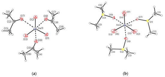 - Marczenko, K.M.; Goettel, J.T.; Mercier, H.P.A.; Schrobilgen, G.J. Xenon trioxide adducts of O-donor ligands; [(CH3)2CO]3XeO3, [(CH3)2SO]3(XeO3)2, (C2H5NO)3(XeO3)2, and [(C6H5)3PO]2XeO3. Chem. Eur. J. 2019, 25, 12357–12366. [Google Scholar] [CrossRef] [PubMed]