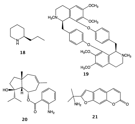 - Buckingham, J.; Baggaley, K.H.; Roberts, A.D.; Szabó, L.F. Dictionary of Alkaloids, 2nd ed.; CRC Press: Boca Raton, FL, USA, 2010. [Google Scholar]