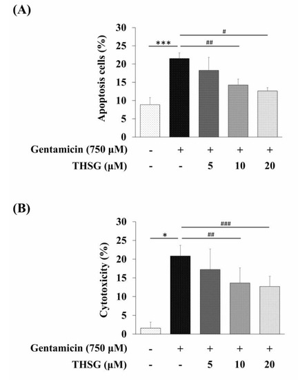 Moreover, recent studies have reported the protective effect of THSG on oxidative stress-induced cellular damage. However, the relationship between gentamicin ototoxicity and THSG remains unknown. In this study, we investigated the otoprotective effect of THSG in the gentamicin-treated mouse cochlear cell line and elucidated the molecular mechanisms underlying the protective effects of THSG. The findings demonstrated the potential of THSG to treat gentamicin-induced ototoxicity.