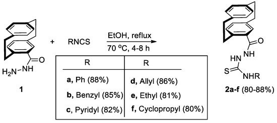 Preparation of 2-(4′-[2.2]Paracyclophanyl-4H-hydrazinecarbothioamides 2af