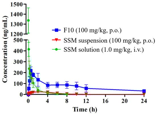 | SSM Suspension (100 mg/kg, p.o.) | F10 (100 mg/kg, p.o.) | SSM Solution (1 mg/kg, i.v.) | |