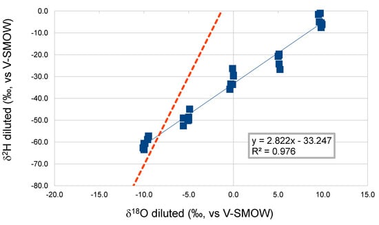 This correlation defined as the Global Meteoric Water Line has been confirmed by Rozanski et al. [] using a larger dataset of precipitation water.