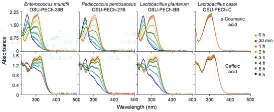 Monitoring Hydroxycinnamic Acid Decarboxylation by Lactic Acid Bacteria Using High-Throughput UV-Vis Spectroscopy