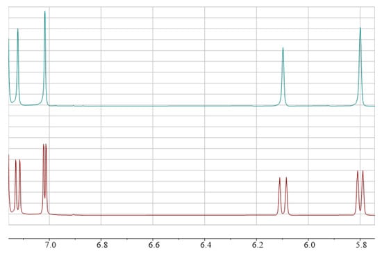 - Atkinson, D.J.; Perkins, M.J. A comment on the magnitude of homoallylic coupling and the conformation of 1,4-cyclohexadiene. Tetrahedron Lett. 1969, 10, 2335–2338. [Google Scholar] [CrossRef]