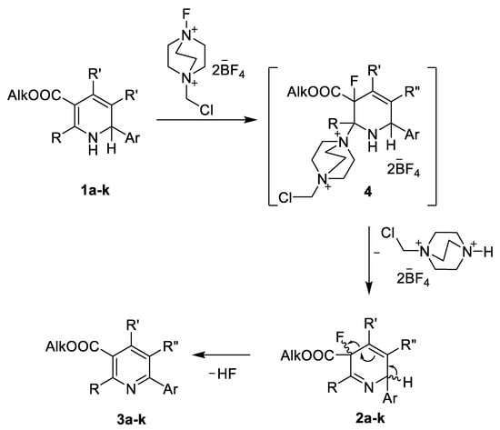 Pikun, N.V.; Sobolev, A.; Plotniece, A.; Rucins, M.; Vigante, B.; Petrova, M.; Muhamadejev, R.; Pajuste, K.; Shermolovich, Y.G. Synthesis of Fluorinated 3,6-Dihydropyridines and 2-(Fluoromethyl)pyridines by Electrophilic Fluorination of 1,2-Dihydropyridines with Selectfluor®. Molecules 2020, 25, 3143. https://doi.org/10.3390/molecules25143143