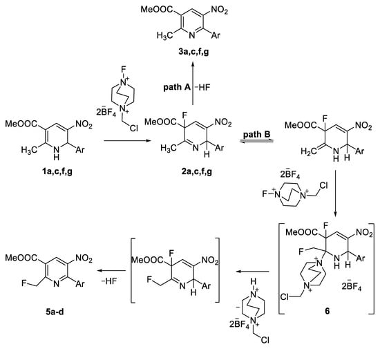 3.4. General Procedure for the Synthesis of Methyl 2-(fluoromethyl)-5-nitro-6-arylnicotinates 5a–d