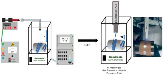 - Hegemann, D.; Brunner, H.; Oehr, C. Plasma treatment of polymers for surface and adhesion improvement. Nucl. Instrum. Methods Phys. Res. Sect. B Beam Interact. Mater. Atoms 2003, 208, 281–286. [Google Scholar] [CrossRef]