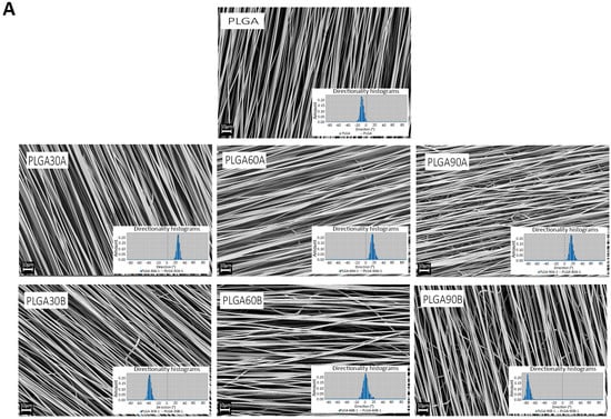 3.1. Morphological Analysis of the Electrospun PLGA Microfibers