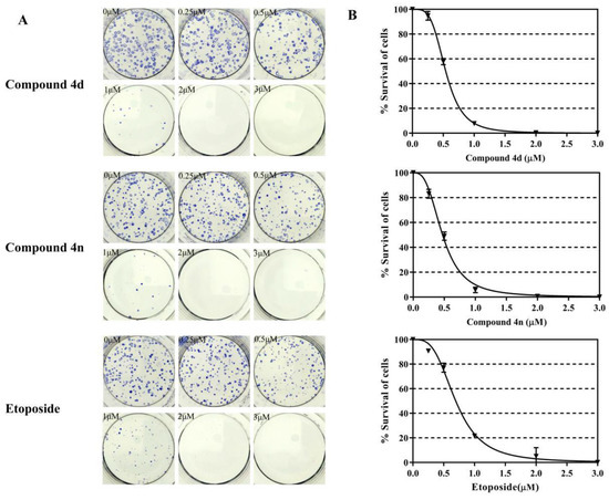 2.5. Inhibition of Clonogenic Survival of A549 Cells by 4d and 4n
