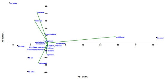 Principal component analysis (PCA) of the VOCs emitted from the investigated Helichrysum species.