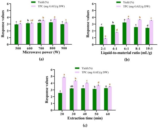 | microwave power (W) | 500, 600, 700, 800, 900 | 6:1 mL/g, 60 min |