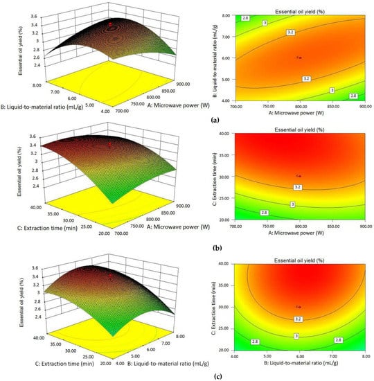 2.2.3. Effects of Independent Variables on Essential Oil Yield