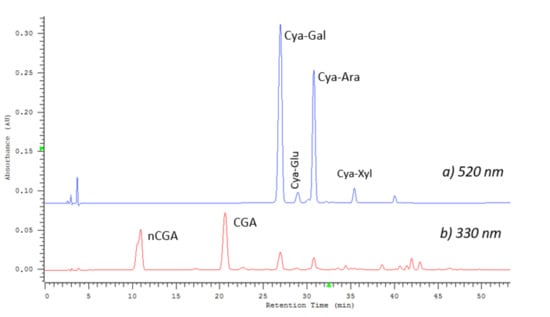 3.3. Determination of CGAs and Anthocyanins by HPLC-DAD