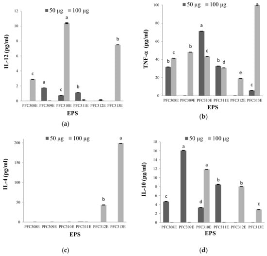 3.3. Determination of the Immune Modulation Properties of Ropy EPS