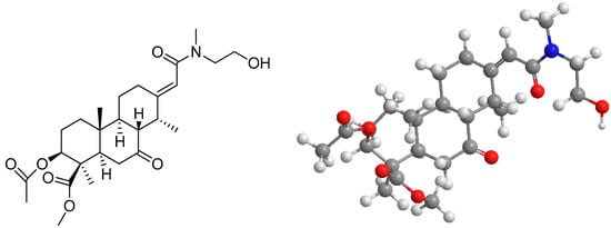 The compound 3β-acetyl-nor-erythrophlamide (3AEP, Figure 1) and the other cassaine diterpenoid amides were isolated from a methanol extract of the stem bark of Vietnamese E. fordii by our research group. The compounds were identified by their physicochemical and spectroscopic data (IR, UV, MS, 1D and 2D NMR). Chemically, among them, six are secondary metabolites belonging to the monocassaine-type diterpenoid amide type such as erythroformide, nor-erythrophlamide, 3β-acetyl-nor-erythrophlamide (Figure 1), 6α-hydroxy-nor-cassamide, 3β-acetoxy-norcassamide, and nor-cassamide []. In addition, the other two compounds were identified as erythrophlesin H and erythrophlesin I which structures are unique due to the signals observed in pairs in the NMR spectra []. Both of them had a dimeric structure consisting of two tricyclic diterpenoids that were constructed from two cassaine diterpenoids connected through an ester linkage in the presence of a 7-ketone group for both monomer left and right units [].