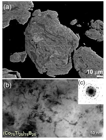 - El-Eskandarany, M.S.; Zhang, W.; Inoue, A. Glass forming ability and magnetic properties of mechanically solid-state reacted Co100−xTix alloy powders. J. Alloys Compd. 2002, 350, 232–245. [Google Scholar] [CrossRef]