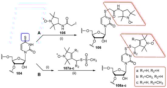 - Hara, H.; Horiuchi, T.; Saneyoshi, M.; Nishimura, S. 4-Thiouridine-specific spin-labeling of E. coli transfer RNA. Biochem. Biophys. Res. Commun. 1970, 38, 305–311. [Google Scholar] [CrossRef]