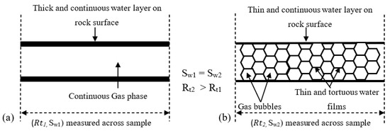 Illustration of electrical resistivity for: (a) Gas–water system; (b) foamed gas–water system.