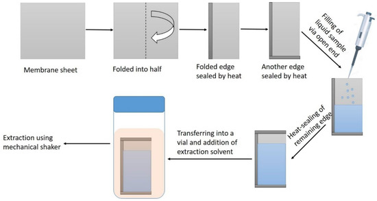 The search for new solutions in the area of sample preparation is a hot topic of research among analytical chemists [3]. In routine LLE, large volumes of the samples are required, and phase separation issues are prevalent while dealing with different kinds of samples. Depending on the nature of the samples, several cleanup cycles are necessary for specific situations. Multiple cleanup cycles and awkward phase separation may lead to a significant loss in the recovery of analytes. The reduction of scale and dimensions of LLE is indeed a great subject of investigation in the area of microextraction. Various new techniques, such as single-drop microextraction [13], dispersive liquid–liquid microextraction [14,15,16], and hollow-fiber liquid-phase microextraction [17,18] have been developed. The issues related to large sample volumes are resolved to a large extent, with the development of these techniques. However, the practical challenges to deal with complex samples, as well as dealing with the reduced volumes of extraction phases, limit the applications of these techniques in routine analysis. Another way to resolve the problem of the complex matrix and improper phase separation is encapsulating the liquid samples within a bag that allows the transport of the analytes but hinders the movement of complex matrix components.
