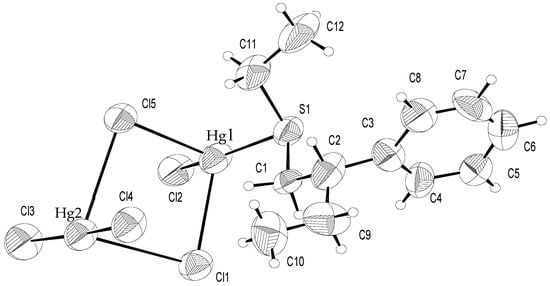 - Biscarini, P.; Pelizzi, G. Crystal structure and spectroscopic properties of mercury (II) halide complexes. 4. Crystal and molecular structure and circular dichroism spectra of the chiral 1-1 adduct (S)S(S)C (−)589 methyl 2-phenylbutyl thioether-mercury(II) chloride. J. Chem. Soc. Dalton Trans. 1988, 2915–2919. [Google Scholar] [CrossRef]