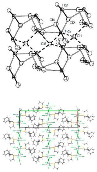 - Bränden, C.I. Crystal Structure of HgCl2 C4H8S. Ark. Kemi. 1964, 22, 83–91. [Google Scholar]