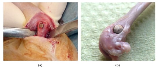 - Frosch, K.-H.; Sondergeld, I.; Dresing, K.; Rudy, T.; Lohmann, C.H.; Rabba, J.; Breme, J.; Stürmer, K.M. Beschleunigung der Osseointegration von Titanimplantaten durch Besiedelung mit pluripotenten, mesenchymalen Vorläuferzellen. In Chirurgisches Forum 2002; Siewert, J.R., Neugebauer, E., Hartel, W., Menger, M.D., Eds.; Springer: Berlin/Heidelberg, Germany, 2002; pp. 453–455. ISBN 978-3-540-43300-2. [Google Scholar]