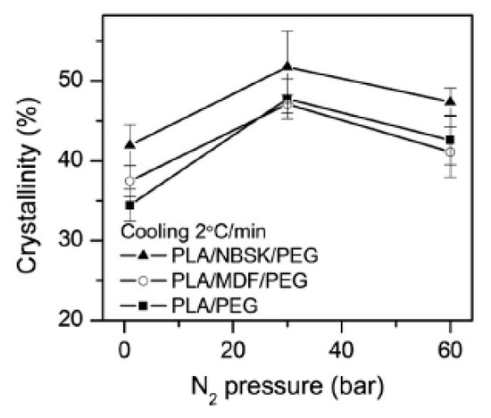 - Ding, W.; Jahani, D.; Chang, E.; Alemdar, A.; Park, C.B.; Sain, M. Development of PLA/cellulosic fiber composite foams using injection molding: Crystallization and foaming behaviors. Compos. Part Appl. Sci. Manuf. 2016, 83, 130–139. [Google Scholar] [CrossRef]