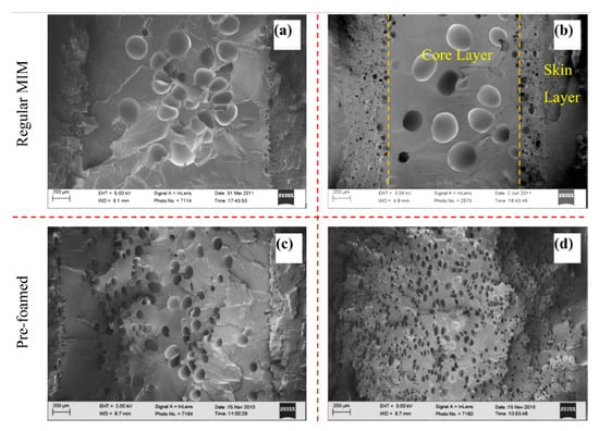 - Sun, X.; Kharbas, H.; Peng, J.; Turng, L.-S. A novel method of producing lightweight microcellular injection molded parts with improved ductility and toughness. Polymer 2015, 56, 102–110. [Google Scholar] [CrossRef]