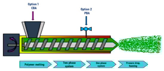 - Lee, S.T.; Park, C.B. Foam Extrusion: Principles and Practice, 2nd ed.; Lee, S.-T., Park, C.B., Eds.; CRC Press, Taylor & Francis Group: Boca Raton, FL, USA, 2014; ISBN 978-1-4398-9859-8. [Google Scholar]