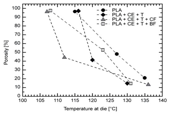 - Rokkonen, T.; Peltola, H.; Sandquist, D. Foamability and viscosity behavior of extrusion foamed PLA—pulp fiber biocomposites. J. Appl. Polym. Sci. 2019, 136, 48202. [Google Scholar] [CrossRef]