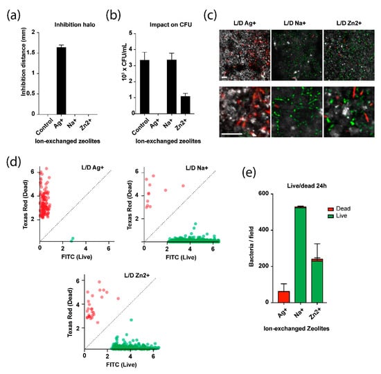 - Milenkovic, J.; Hrenovic, J.; Matijasevic, D.; Niksic, M.; Rajic, N. Bactericidal Activity of Cu-, Zn-, and Ag-containing zeolites toward escherichia coli isolates. Environ. Sci. Pollut. Res. 2017, 24, 20273–20281. [Google Scholar] [CrossRef]