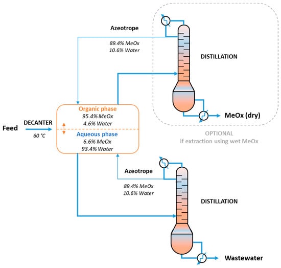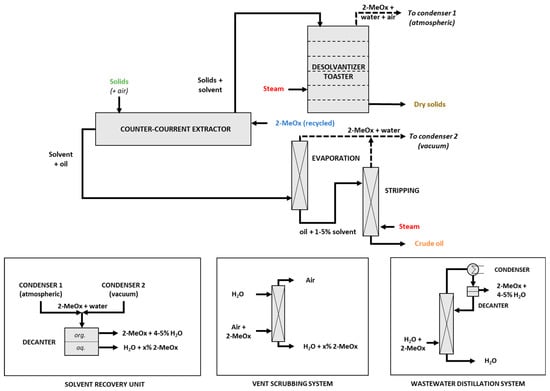 2-MeOx (excluding azeotropes) has a higher boiling point and vaporization enthalpy than hexane; therefore higher energy consumption is expected for solvent distillation step. However, it is still acceptable for industrial applications and still much lower than it would be with ethanol (∆Hvap = 843 kJ/kg), which is the other viable solvent considered for oil extraction.